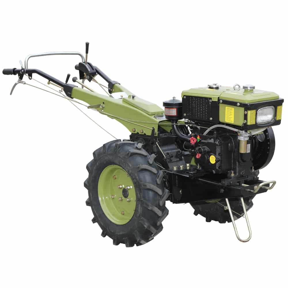 Система подачи топлива с устойчивым к закоксовыванию распылителем форсунки обеспечивает расход дизельной смеси на уровне 1 л/моточас. Снабженный жидкостным охлаждением двигателя, он способен работать при максимальной нагрузке до 10 часов без перегрева. Оптимальное соотношение мощности силового агрегата с массой машины, а также наличие колес с шевронным рисунком протектора, обеспечивающим надежное сцепление с грунтом, позволяет использовать технику для культивирования тяжелых почв и перевозки грузов весом до 1 т.