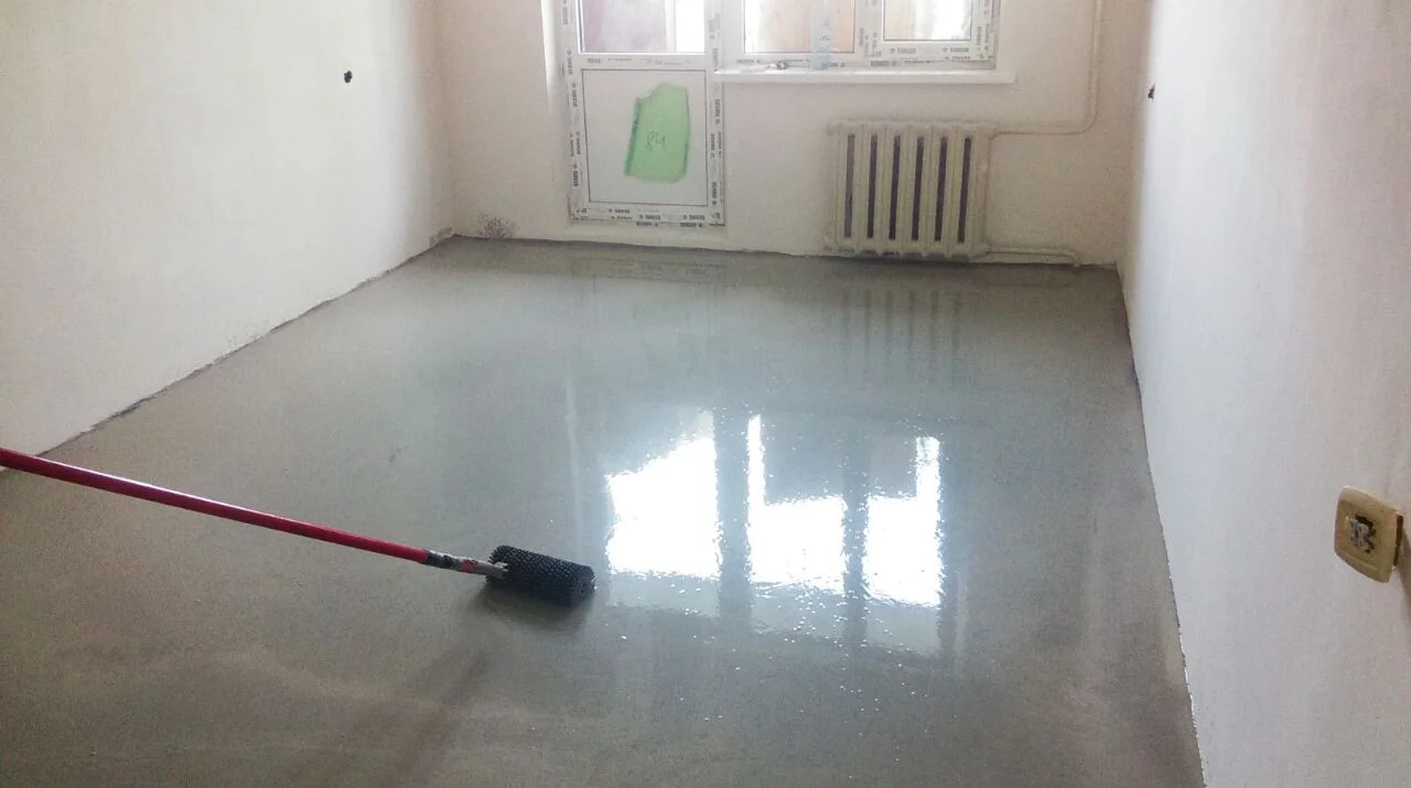 - Поскольку пол быстро высыхает, хозяин нуждается в ассистенте. Иначе он может не успеть выровнять пол, особенно в большом помещении.
