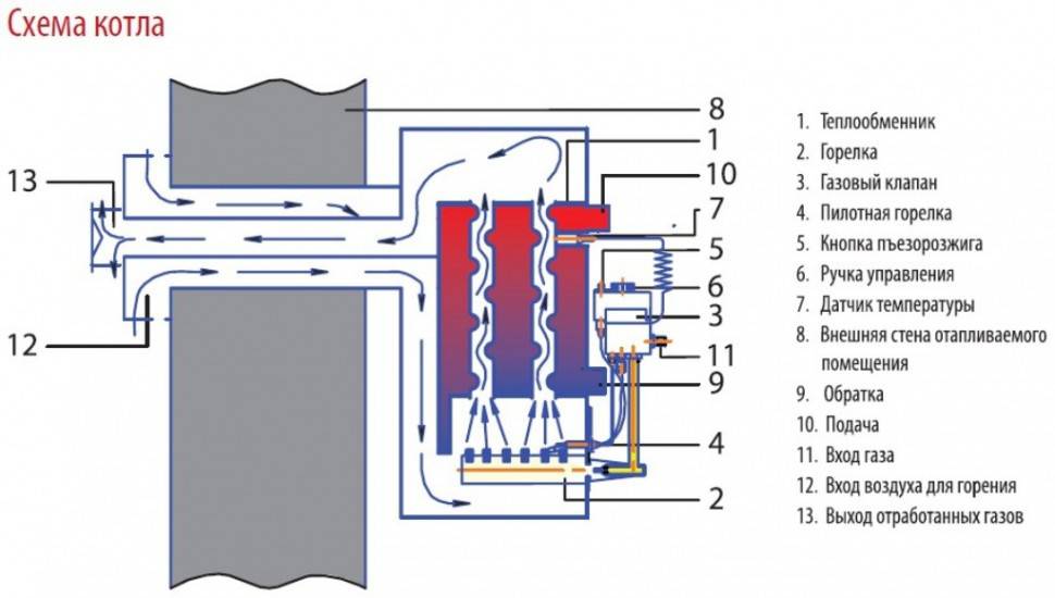 Парапетный газовый котел состоит следующих частей:
