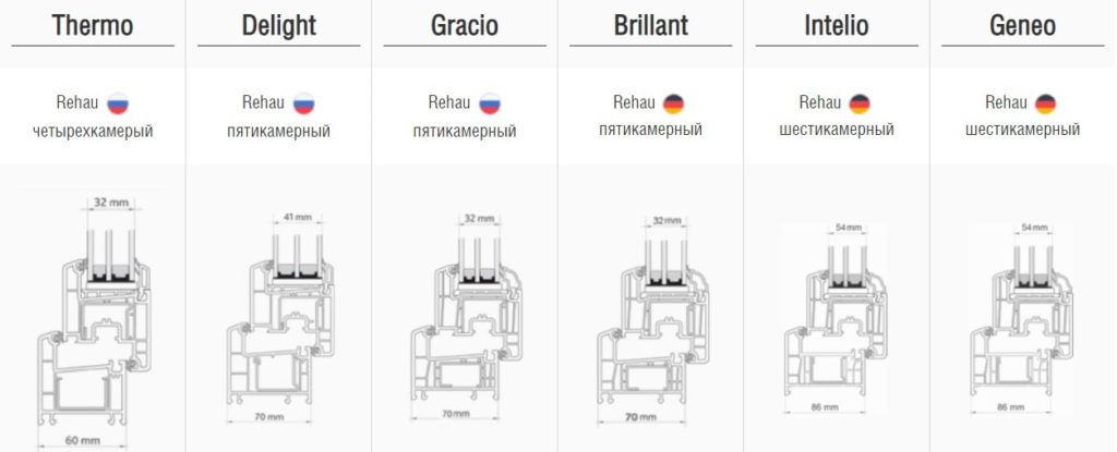 Rehau – всемирно известный немецкий концерн, действующий в Германии с 1948 года, выпустивший первый профиль для окон пвх в 1959 году. На сегодняшний день его ассортимент насчитывает более 10 видов, самые востребованные из них следующие: