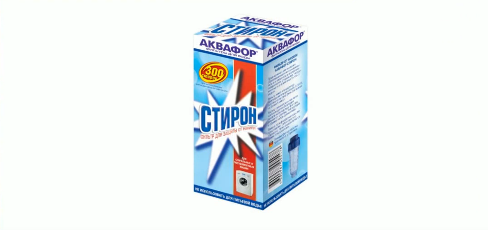 - Аквафон Стирон – фильтр от российской . Имеет отличные рекомендации в защите от накипи бытовых приборов, способен полностью заменить различные средства от образования накипи. Устанавливается между точкой подачи воды и агрегатом. Обладает стандартными размерами на подсоединение, дополнительные переходники при установке не требуются. Объема наполнителя хватит на триста рабочих циклов стирки;