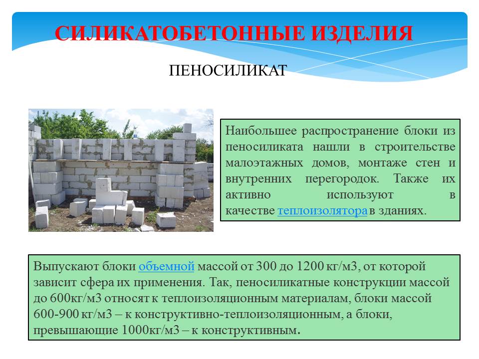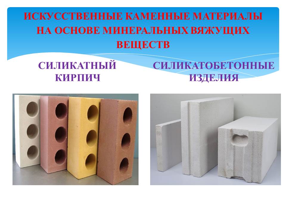 - силикатный кирпич и силикатобетонные изделия;