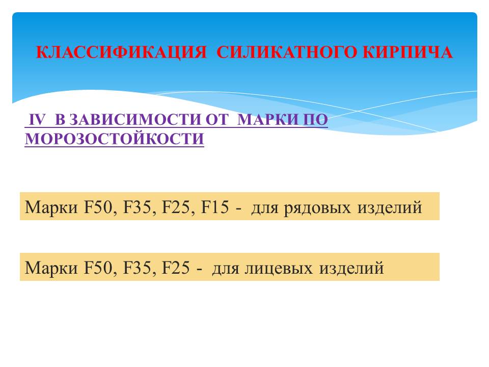 - Морозостойкость. Если в обозначении стоит значение F35, значит блок способен выдержать 35 циклов замораживания без потери изначальных характеристик.