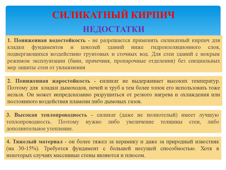 Несмотря на такое количество преимуществ, у силикатного кирпича есть и недостатки: