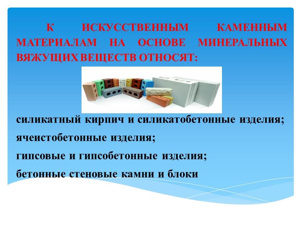 Презентация «Глава 11. Искусственные каменные материалы на основе минеральных вяжущих веществ»