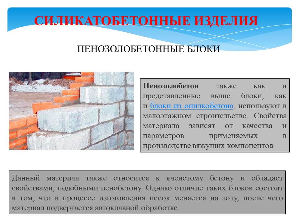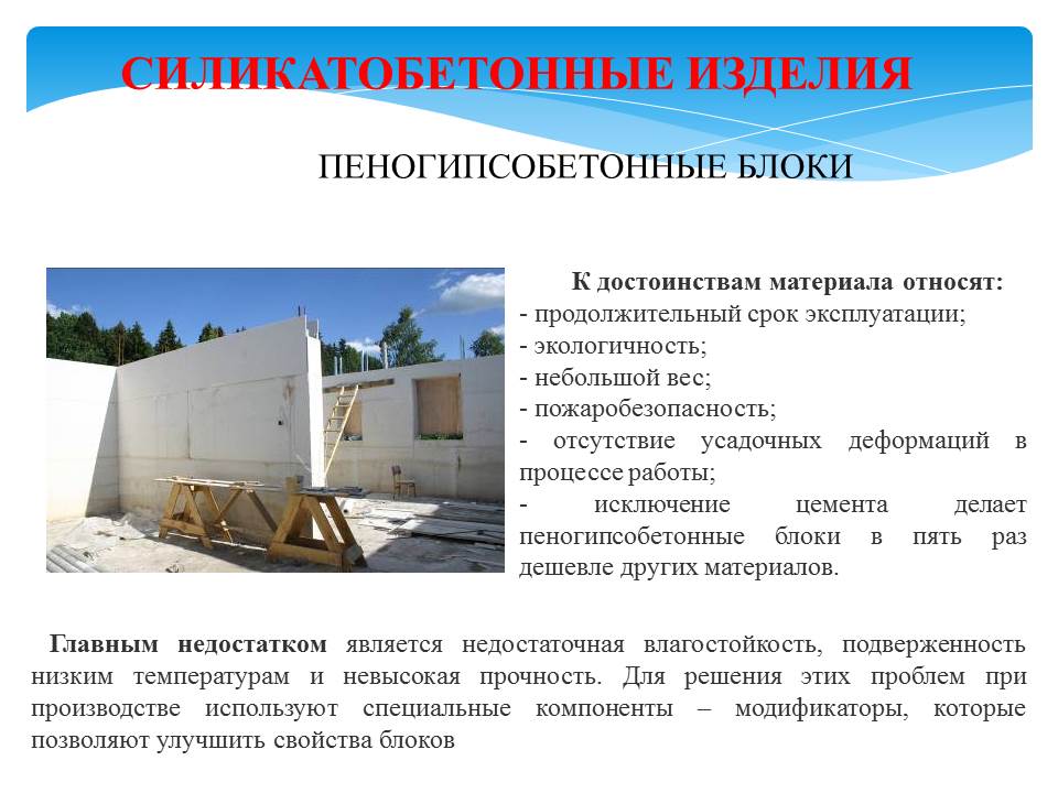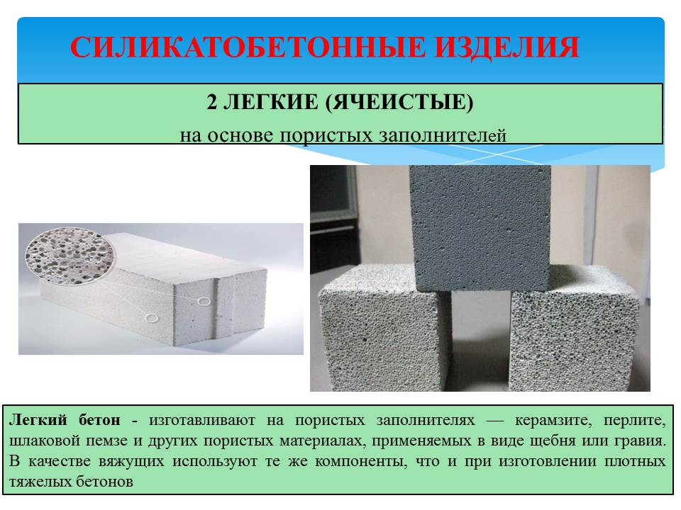 - ячеистобетонные изделия;