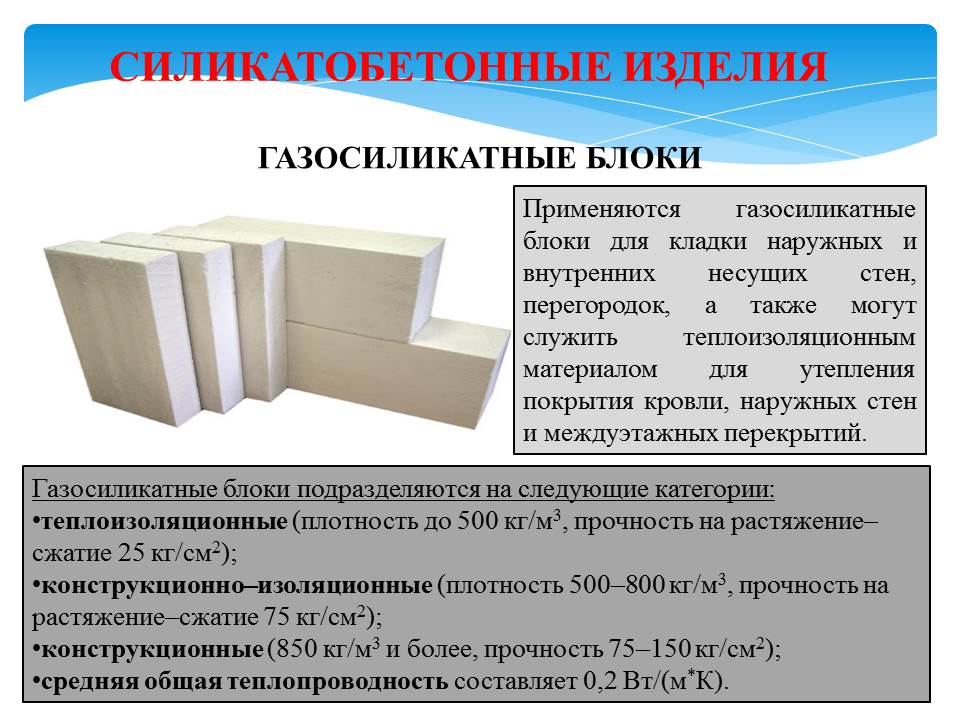 Силикатные строительные блоки производят двух видов: