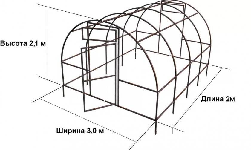 На рисунке нужно указать размеры теплицы – ее ширину, высоту и длину, рассчитать количество необходимого материала. Поликарбонат лучше взять с небольшим запасом, чтобы укрыть всю теплицу.