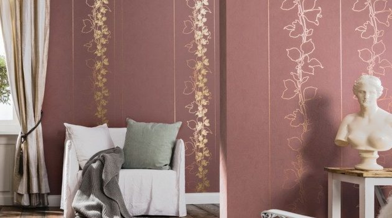 - Opulence Giulia. Коллекция способна выделить главные плюсы комнаты при помощи нежных цветов с изящными картинами;