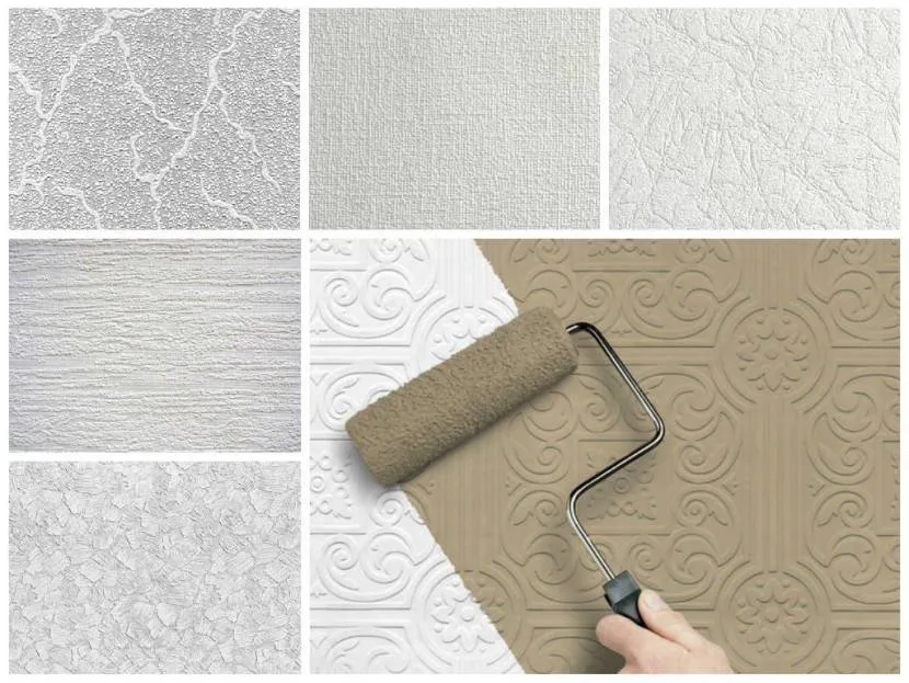 Обои изготавливаются двух типов, с уже готовым верхним слоем и структурные, те, что используют под покраску. Они имеют рельефный верхний слой с хорошо заметной текстурой, чаще всего белого или кремового цвета. Материал привлекает невысокой стоимостью и безопасным составом.