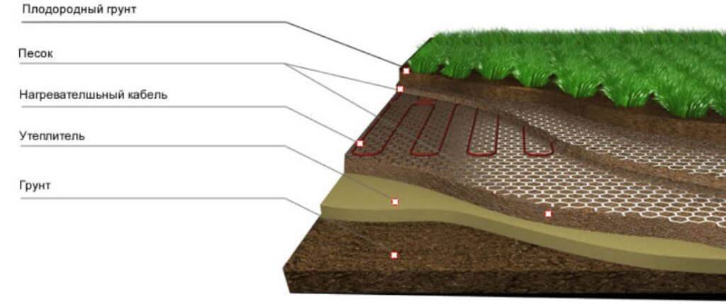 Установка системы кабельного обогрева грунта производится в несколько этапов.