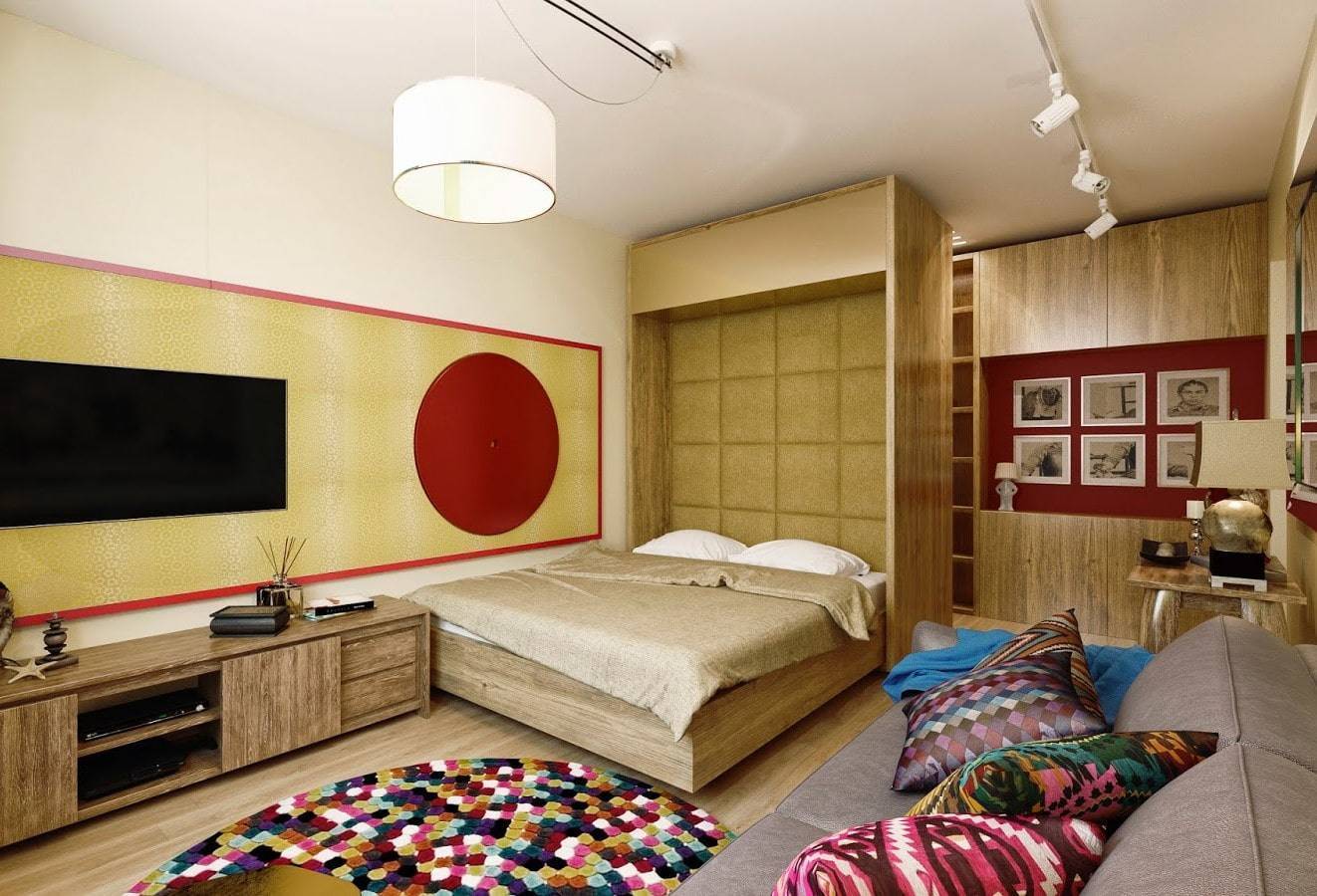 - Современный дизайн. Если правильно подобрать мебельный гарнитур, в который встраивается кровать, она может стать ярким пятном или незаметным фрагментом фасада.