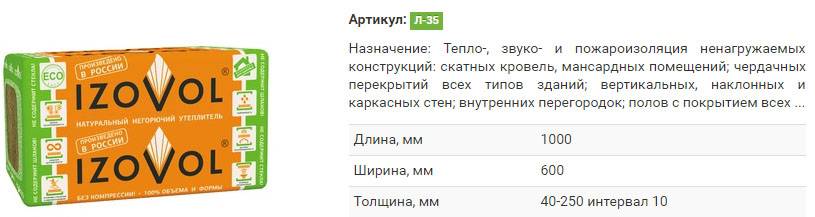 - Плотность (кг/м3) – от 20 (для Изобел) и 35 (для Izovol).
