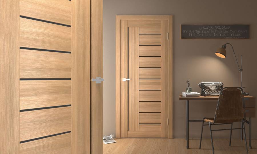 Достойную конкуренцию им составляют межкомнатные двери, покрытые натуральным шпоном. Под ним понимают очень тонкий лист древесины, а чтобы его изготовить, нужно сделать тончайший срез с поверхности массива дерева. При этом в шпоне сохраняется натуральность цвета, а также структура природного материала.