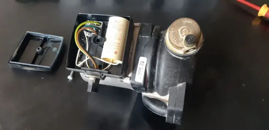 На насосах котлов есть пусковой конденсатор, который со временем теряет емкость и может быть причиной проблем и повлиять на срок эксплуатации самого насоса. Так вот чтобы его достать и заменить – требуется снятие головы насоса, иначе никак. Знаю, что в других котлах это можно сделать легче.