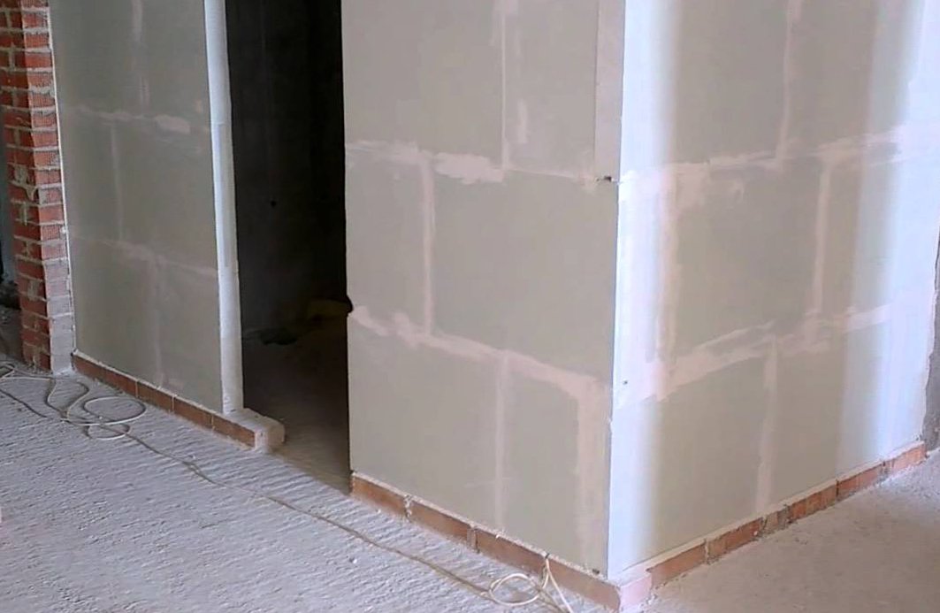 В зависимости от размера двери и развёрнутости углов, не всегда можно выполнить проём из ПГП. Иногда необходимо воспользоваться прочими материалами, для корректировки размеров дверного проёма без ущерба для площади помещения.
