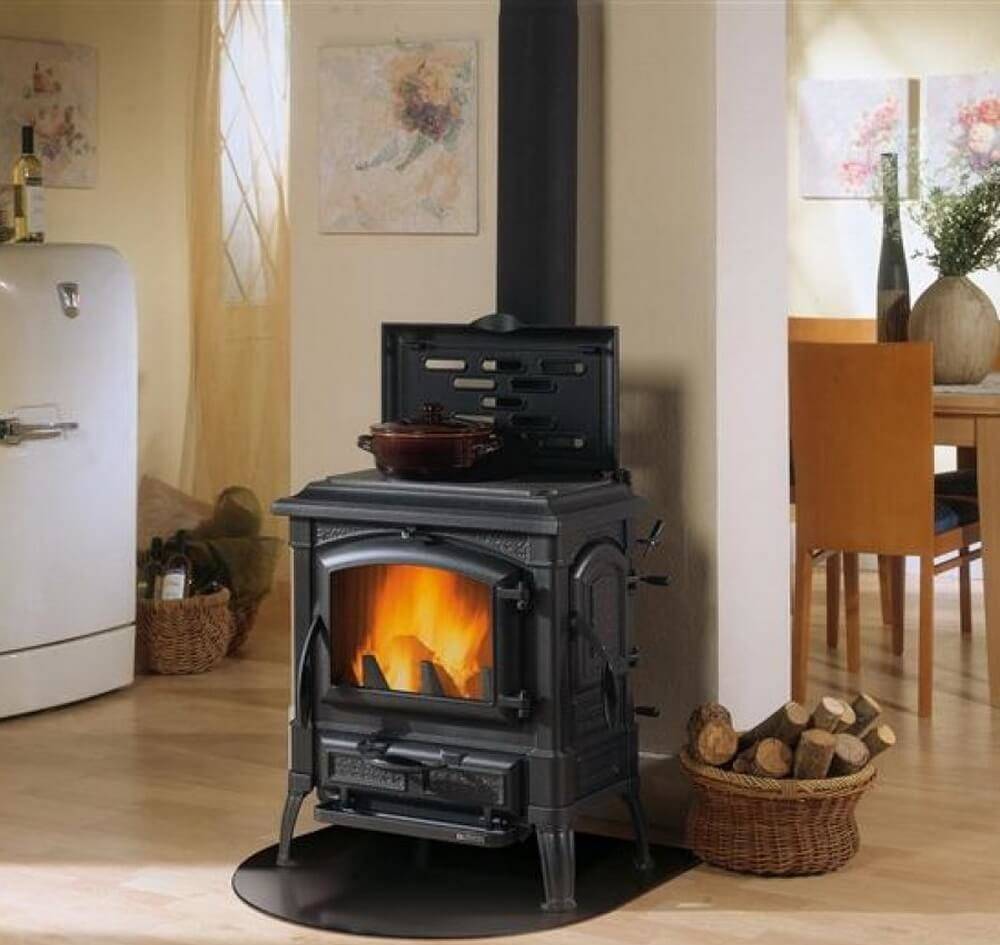 Если говорить о практической составляющей, то полезно если печь камин длительного горения для дачи имеет в верхней части конфорки, на которых можно греть/готовить пищу. В условиях дачи это очень полезная опция. Есть еще металлические камины с духовкой, но вот они вряд ли поддерживают режим длительного горения.