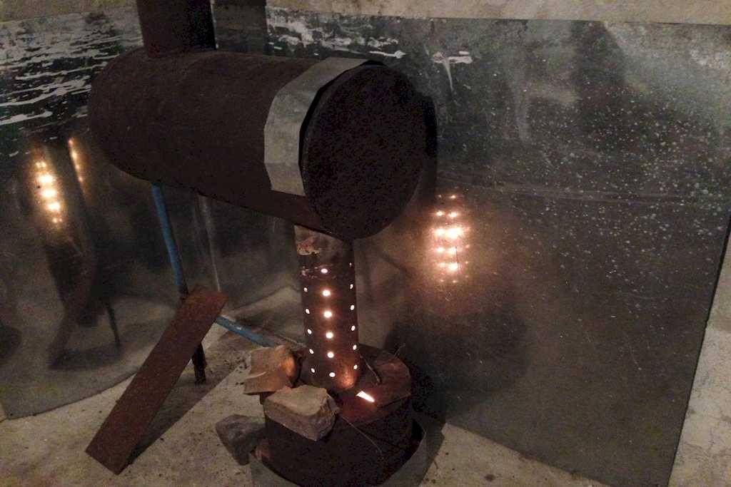 Устройство печки-капельницы из трубы с нижней подачей топлива