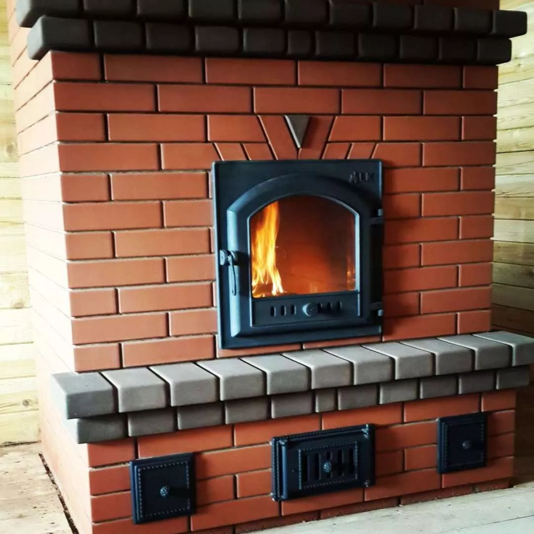 - Топка выполняется из шамотного кирпича с наивысшими огнеупорными показателями. То же касается поддувала. Второй слой, наружный, оформляется декоративным кирпичом.
