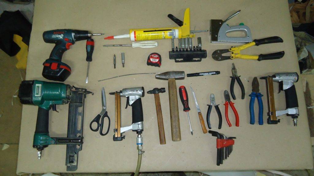 Третьим шагом станет подготовка инструментов. Кроме того, перетяжка и обшивка мягкой мебели своими руками могут потребовать применения швейных принадлежностей. Для проведения работ понадобятся: