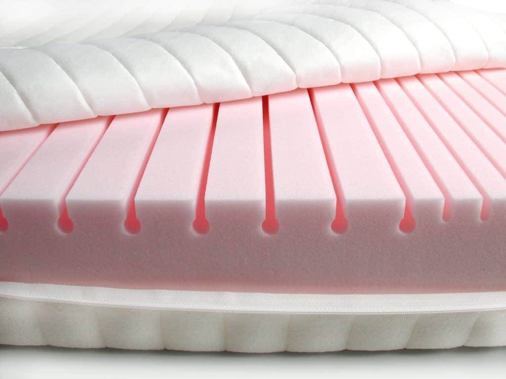 Так выглядят ламели снизуЕсли ткань тонкая, то порвется, потом начнет крошится поролон. Но не это самое печальное — ламели выгнулись в обратном направленииИспользование корсажной ленты позволяет перераспределить нагрузку - Пенополиуретан (ППУ, поролон — все названия одного материала). Используется специальный плотный поролон. Если будете выбирать, кроме плотности смотрите на такой показатель, как коэффициент долговечности — чем выше цифра, тем лучше (и дороже). Этот показатель отображает насколько долго поролон после снятия нагрузки будет восстанавливать первоначальную форму. Толщина его берется по первоначальному, заводскому пирогу. Делать толще без ограничений можно только на мягкой мебели которая не раскладывается (банкетка, софа, кресло).