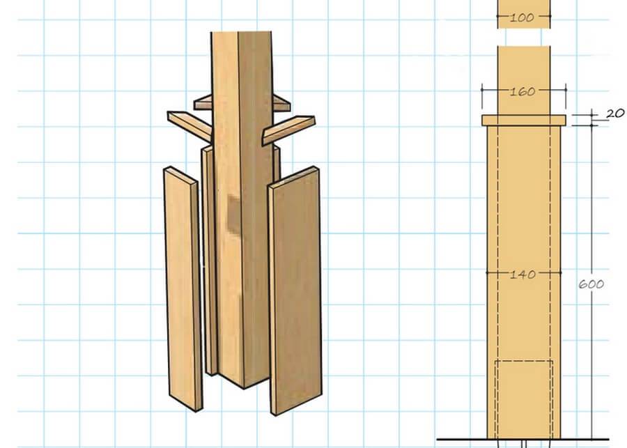 - опорные столбы — 6 шт. 3,600x100x100 мм;