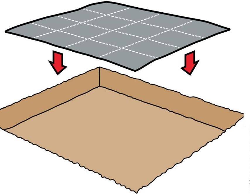 - На дне сооружения размещаем агроволокно. При помощи степлера его нужно прикрепить к бортикам песочницы. Для этого приподнимите и сложите краешки в каждом из углов, а пласт закрепите посередине. Завернутые края нужно зафиксировать еще с внешней стороны.