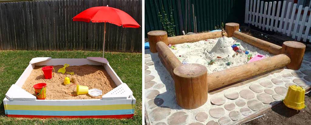 Проявив фантазию и воображение, можно сделать песочницу любого вида, будь то корабль с парусом, домик-беседка, автомобиль и многое другое.
