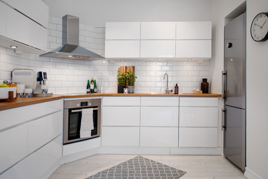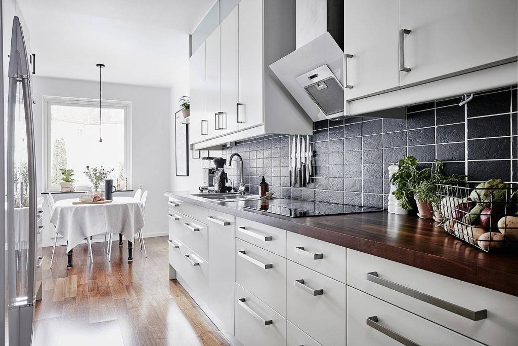 Небольшая кухня не ограничивает возможности дизайна. На самом деле, ремонт или строительство-это возможность действительно размять свои творческие мышцы и мыслить нестандартно. Просто потому, что кухня маленькая, не означает, что вы должны покрасить ее в белый цвет. Планировки могут выглядеть динамичными и просторными, даже если они наполнены темными, яркими или смелыми цветами. Тем не менее, полностью белая цветовая палитра с приборами из нержавеющей стали и хромированными светильниками-это что-то вроде классического кухонного взгляда, который всегда будет в тренде.