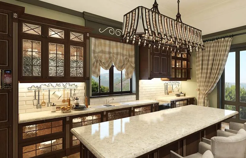 Здесь наоборот лучше сделать отделку кафелем или задействовать белоснежный кирпичик для оформления стены в рабочей зоне кухни. Также приемлемо использовать материалы, имеющие искусственную состаренность: клинкерная плитка, декоративный кирпич. Что касается оттенков для швов, то здесь подойдут максимально естественные: соломенный, песочный, молочный, кремовый.