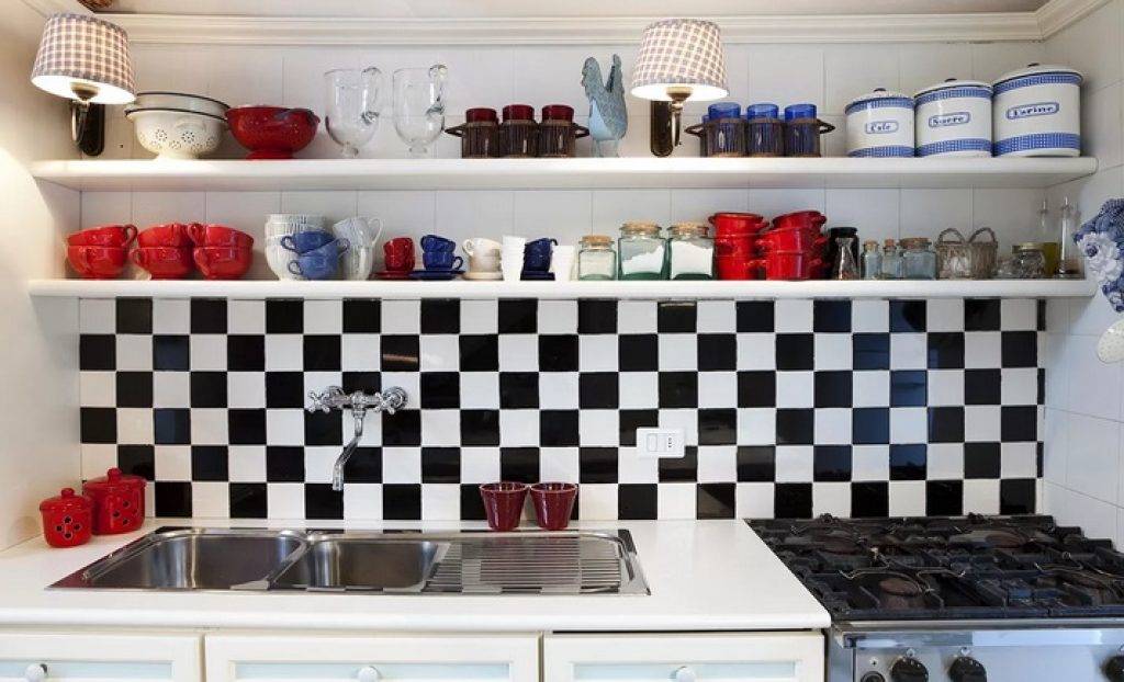 Это самый практичный отделочный материал, который с легкостью моется, устойчив к воздействию воды, химсредств и температурным перепадам. Керамическая плитка пожароустойчива и долговечна, особенно рекомендуется ее выкладывать в тех кухнях, где есть газовая плита.