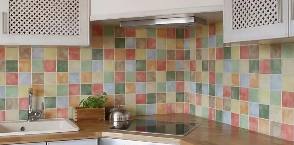 - Квадрат 10 на 10: плитка очень удобная для фартука, потому что, чаще всего её практически не приходится подрезать, однако количество швов в данном случае будет намного больше;