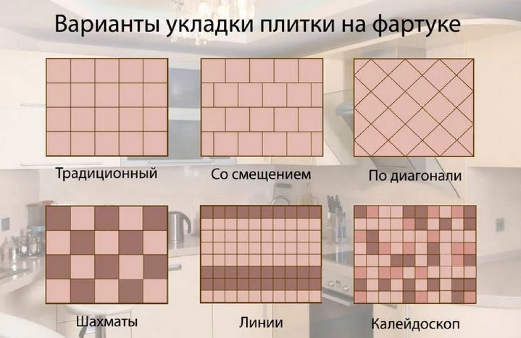 На современном строительном рынке существуют разные методы монтажа облицовки. На хорошую отделку кухни влияют цвета, формы и варианты монтажа керамического покрытия. Рассмотрим следующие способы облицовки.