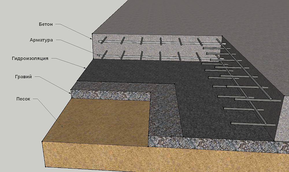 Представляет собой железобетонную плиту на искусственно созданном основании. Это «плавающая» конструкция: подвижки грунта при замерзании-оттаивании происходят вместе с плитой.