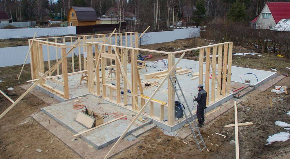 В каркасном домостроении используются разные типы фундаментов: ленточный, столбчатый, свайный. При пучинистом грунте возникает опасность «выталкивания» фундамента, если он заглублен выше уровня промерзания. Плитный фундамент называют «плавающим» из-за способности перераспределять нагрузки, вызванные пучением.