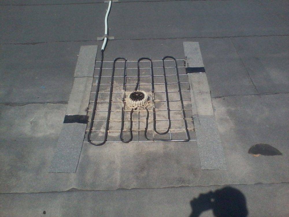 Поэтому именно около водоприемных воронок и укладывают греющий кабель. Здесь много разных вариантов расположения, один из них на фото ниже.