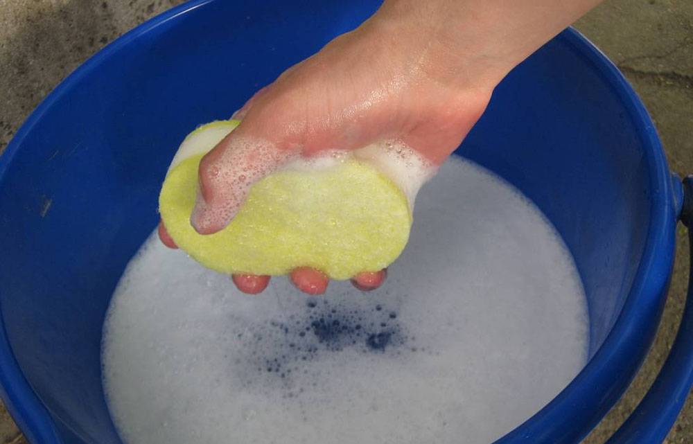 Меловая побелка легко удаляется простой мыльной водой, но придется неоднократно сменить воду. Известь отчищается труднее, но и с ней можно справиться все той же мыльной водой.
