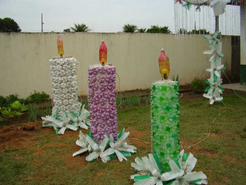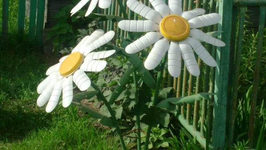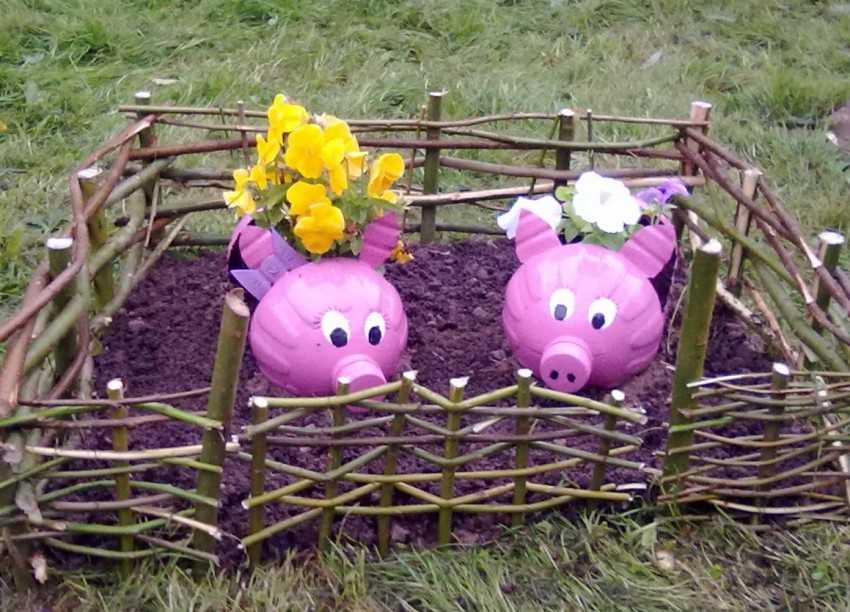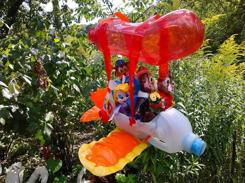Поделки из пластиковых бутылок размещайте в глубине сада или клумб. Особенно если у вас есть дети (чтобы они не смогли дотянуться до них руками). Края у пластиковых поделок могут случайно поранить их.