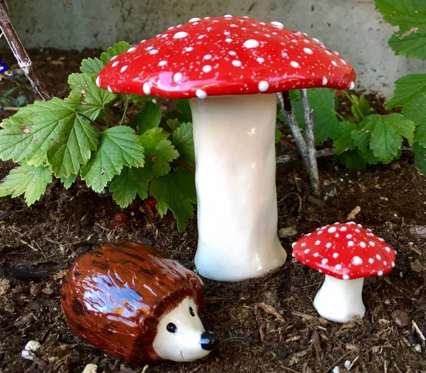 Шляпки декоративных грибов для сада можно делать из очень многих материалов и старых вещей: игрушек, посуды, одноразовой тары и прочего