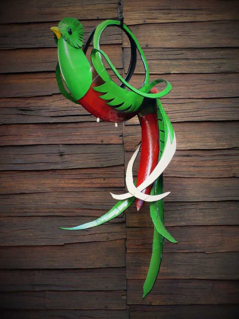 Есть еще одно улучшение: крылья. Их можно оставить как есть, можно вырезать перья из резины или сделать перья из белых пластиковых бутылок (из литровой бутылки получается 6 перьев), прикрепить их к сетке. Так получится такая птичка…