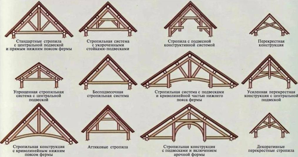 Стропильные ноги или стропила — наклонные элементы, которые монтируют с шагом 80-200 см и соединяют горизонтальными прогонами. Передают усилия от кровли на мауэрлат. По виду опирания их разделяют на наслонные или висячие.