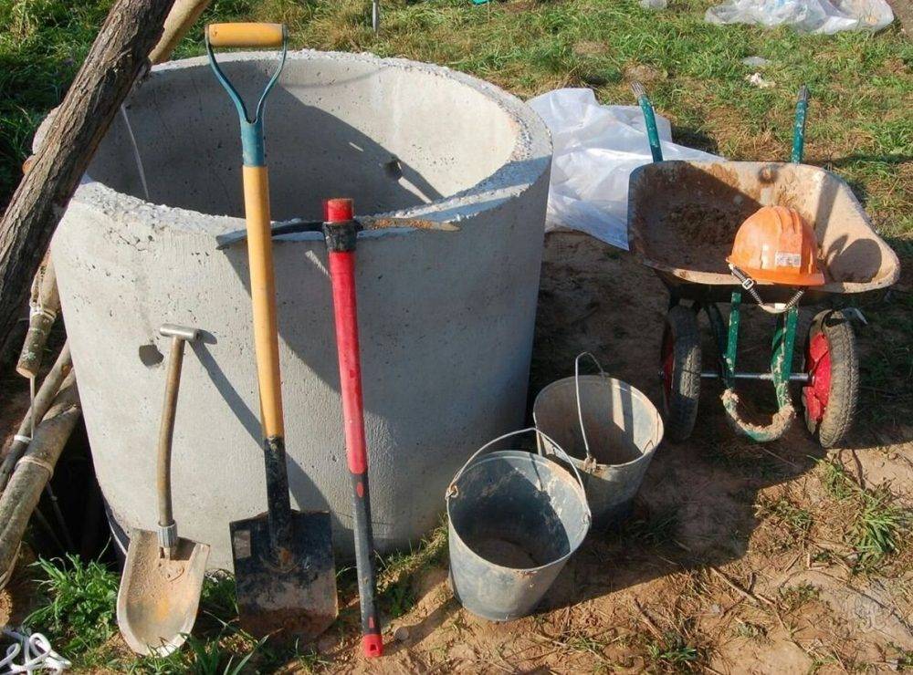 - можно приобрести или сделать самостоятельно кольца с монолитным днищем. Это эффективное решение, так как у мастера отпадет необходимость обустраивать бетонное основание. Срок работ сократится к минимуму;