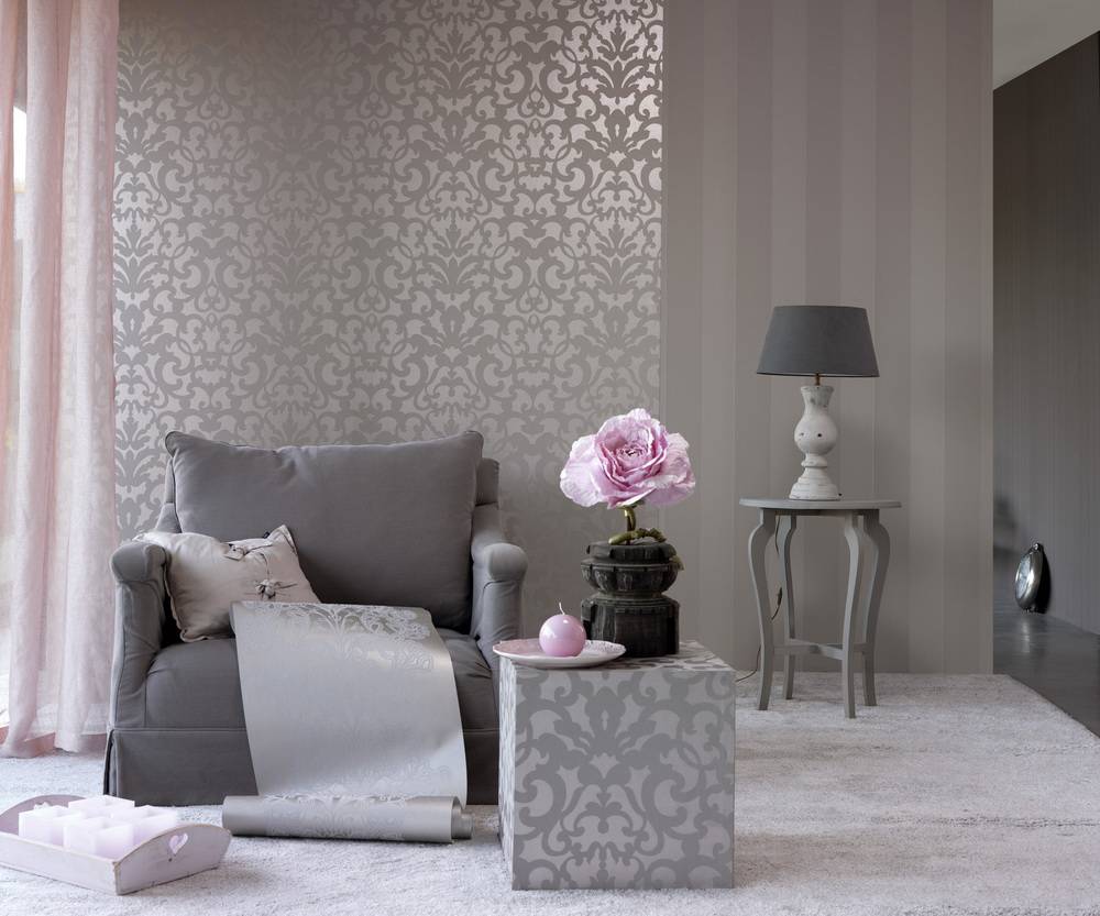 Комбинирование разных фактур гармонично смотрится практически в любой комнате квартиры. В небольших комнатах обои с блестящей поверхностью за счет отражающих свойств увеличат пространство. Кроме того они интересно смотрятся на контрасте с матовым полотном.