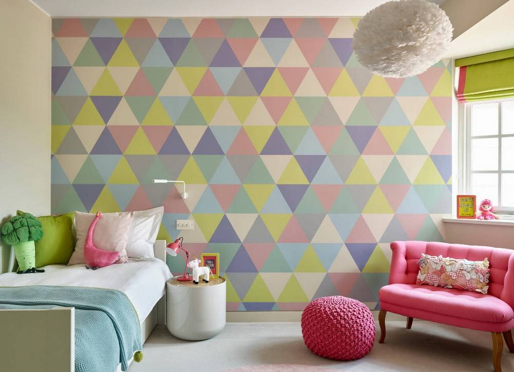 Он сродни лоскутной мозаике или тому, что принято называть пэчворк. В таком подходе совмещается вертикальный и горизонтальный метод поклейки. Особенно хорошо выглядят результаты лоскутного способа в детских. Сочетание фрагментов различного размера позволяет добиваться неповторимых эффектов в декорировании не только гостиных, спален и детских, но и для выделения отдельных зон в кухнях и при оформлении дачных домов.
