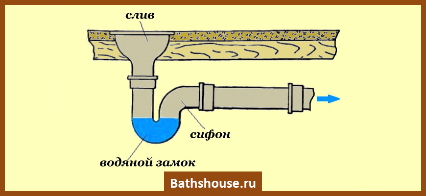 Система слива, оснащенная гидрозатвором, имеет в своей конструкции трубку, в которой постоянно присутствует вода. Устройство гидрозатвора, постоянно наполненное водой, становится преградой на пути запахов из канализации в ванную