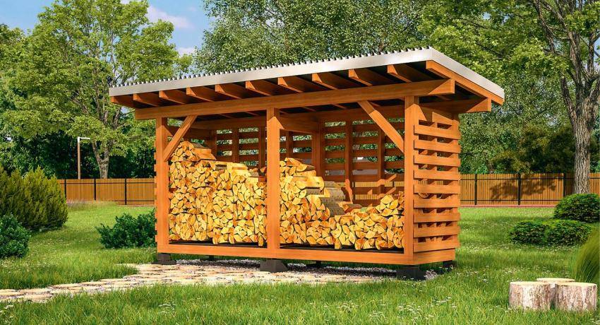 - должна быть обеспечена хорошая вентиляция – это главное отличие от закрытого сарая, иначе поленья будут отсыревать и гнить;