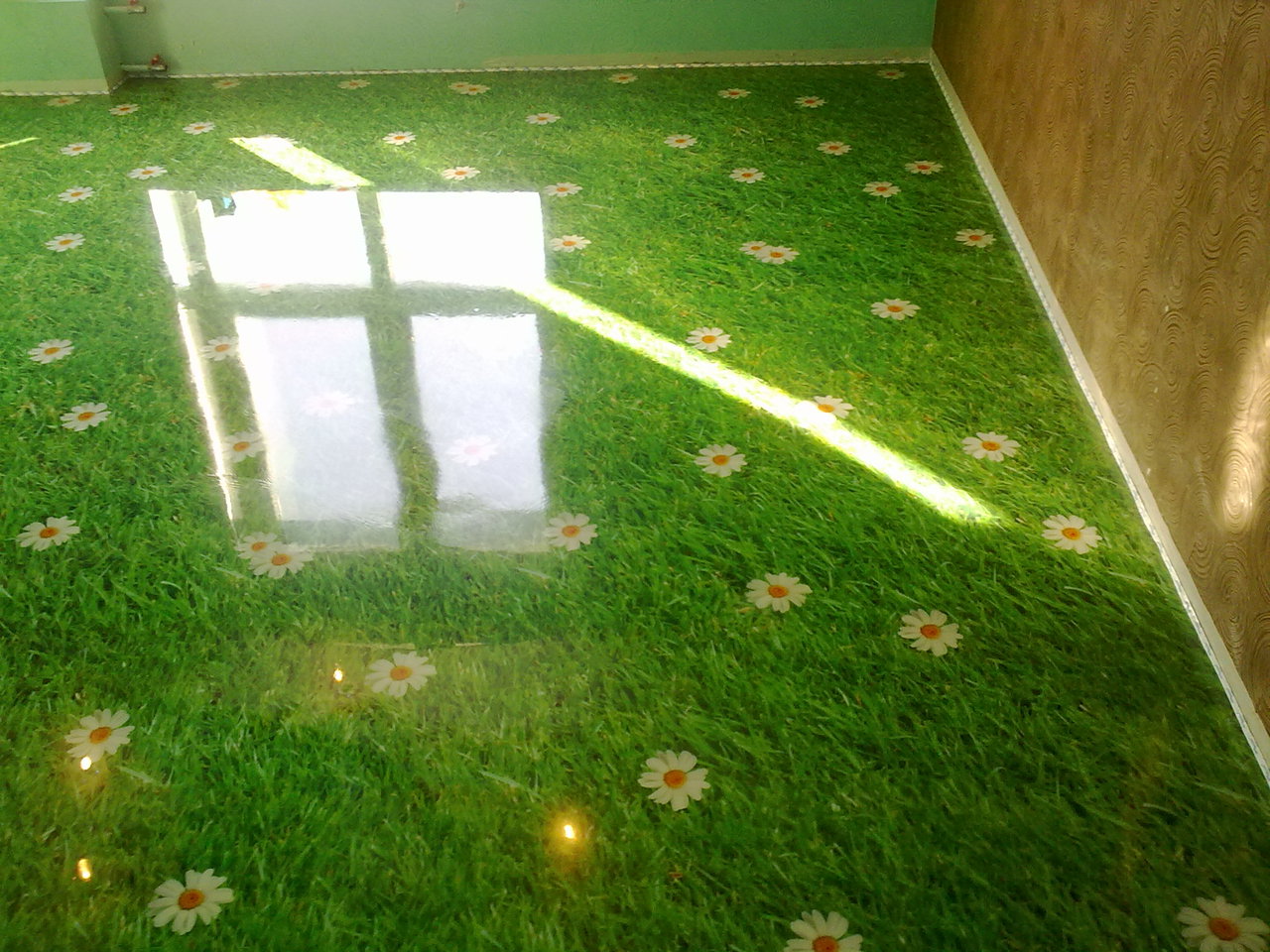 Рисунок вырезается по размеру и приклеивается к полу на специальный лак