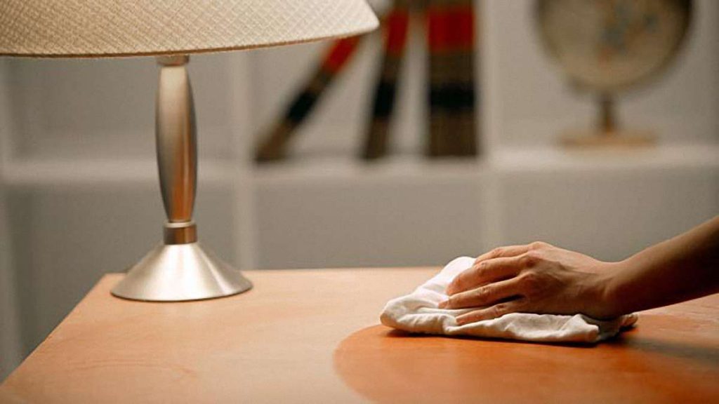 - Намочив сухую чистую тряпку, протрите поверхность мебели.