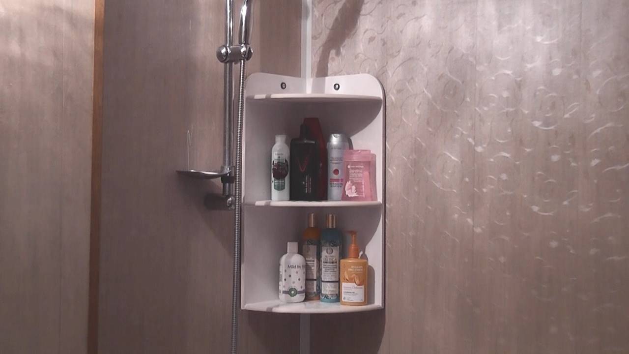 На видео ниже — пример монтажа угловой полочки в ванную комнату своими руками: