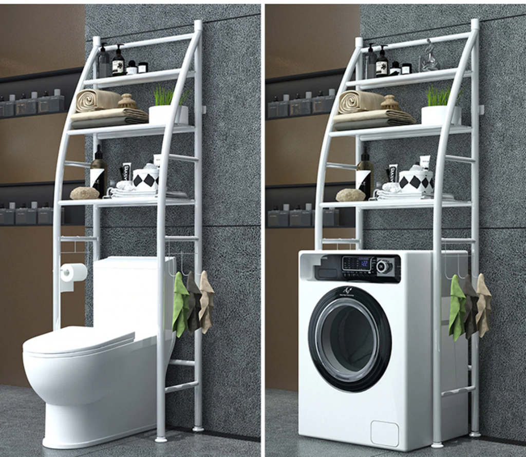 Второй тип конструкции (стационарная напольная) чаще называют элементом мебели, нежели аксессуаром для ванной. Такие полки имеют огромные размеры, что позволяет поместить в них все необходимые принадлежности. Многие люди используют такую полку также для хранения бытовой химии.